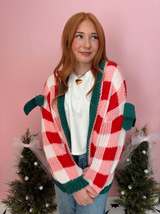 Gingham Bow Chunky cardigan