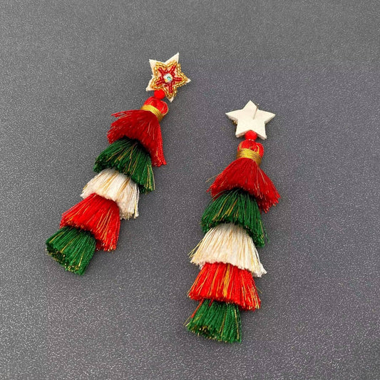 Mio Queena - Christmas Colored Polyester Tassel Stars Post Earrings
