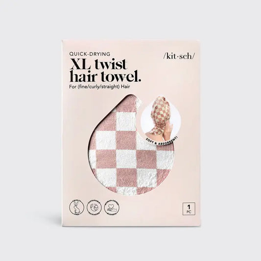 Extra Large Quick-Dry Hair Towel Wrap- Terracotta Checker