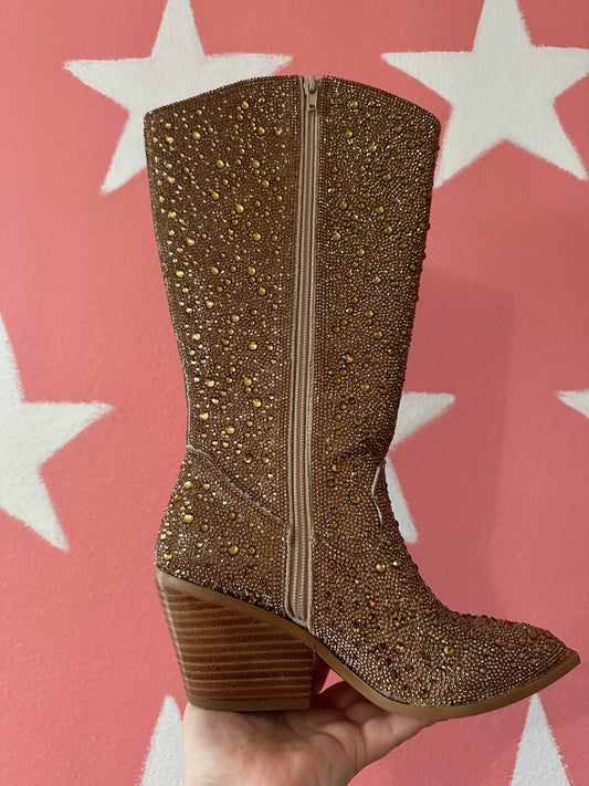 GLITZY - Gold Rhinestone Cowboy Boots (Wide Calf)
