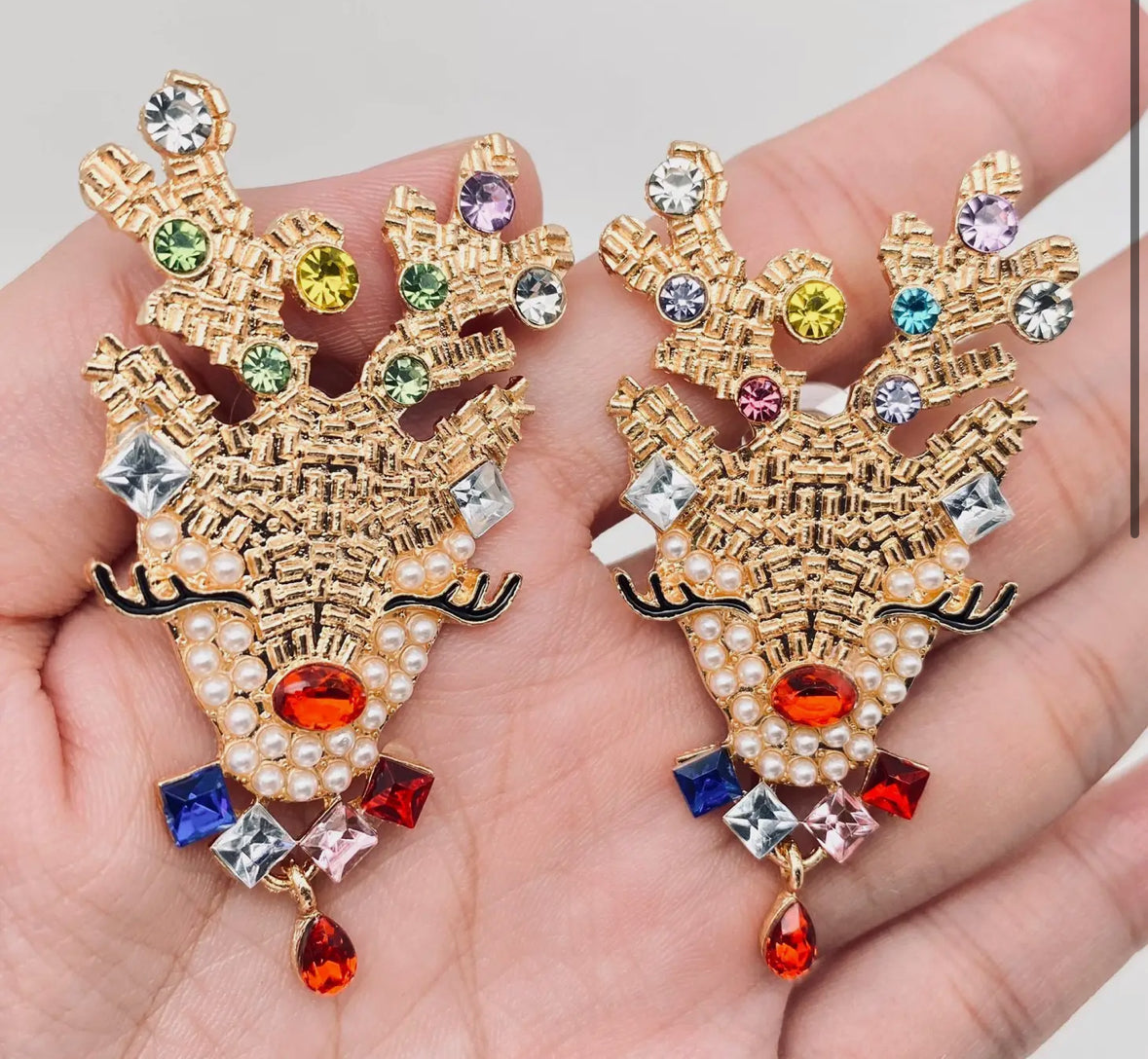 These festive earrings feature a design of Rudolph the Reindeer with a sparkling red nose. Crafted with stainless teel and plated with gold, this fun yet classy elk post earring is sure to be a hit during the holiday season.