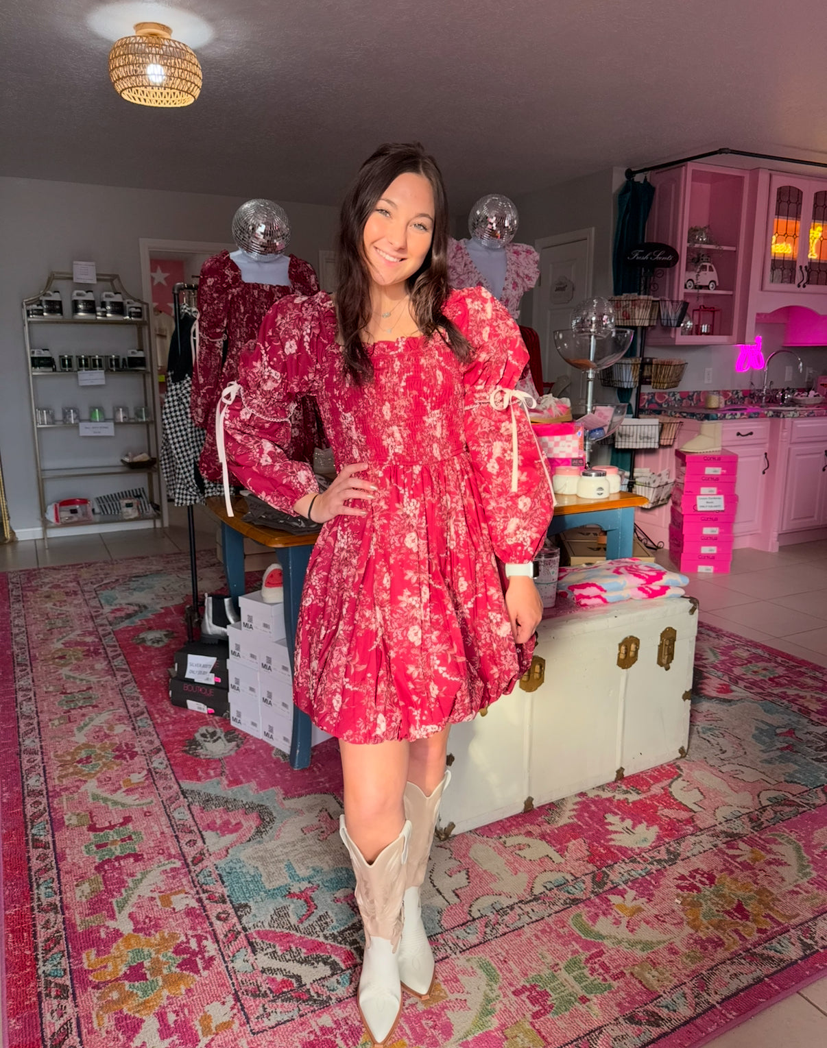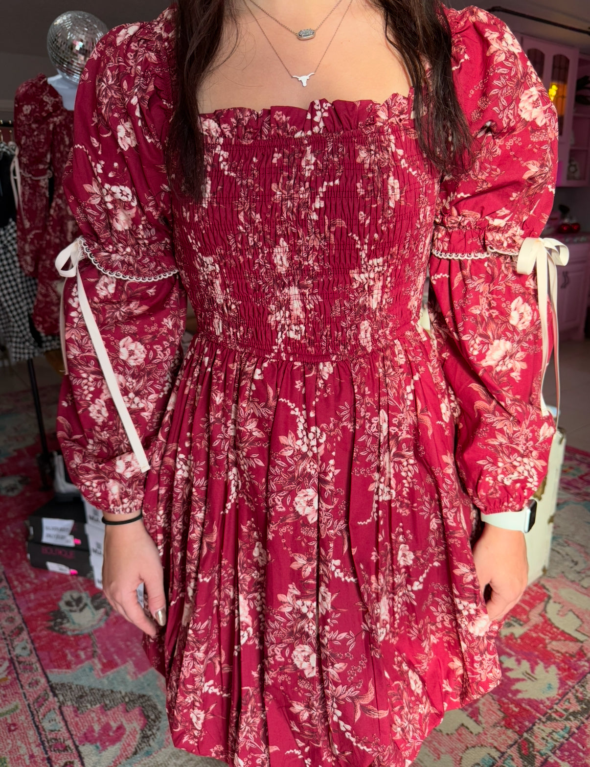 This Burgundy Floral Bow Bubble Dress is a versatile and flattering addition to any wardrobe. The elastic design ensures a perfect fit for all body types, while the absence of zippers adds convenience and comfort. A must-have piece for effortless style.