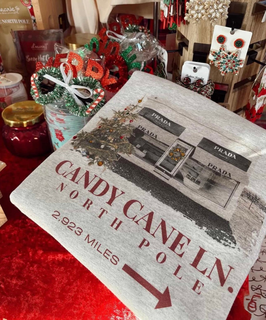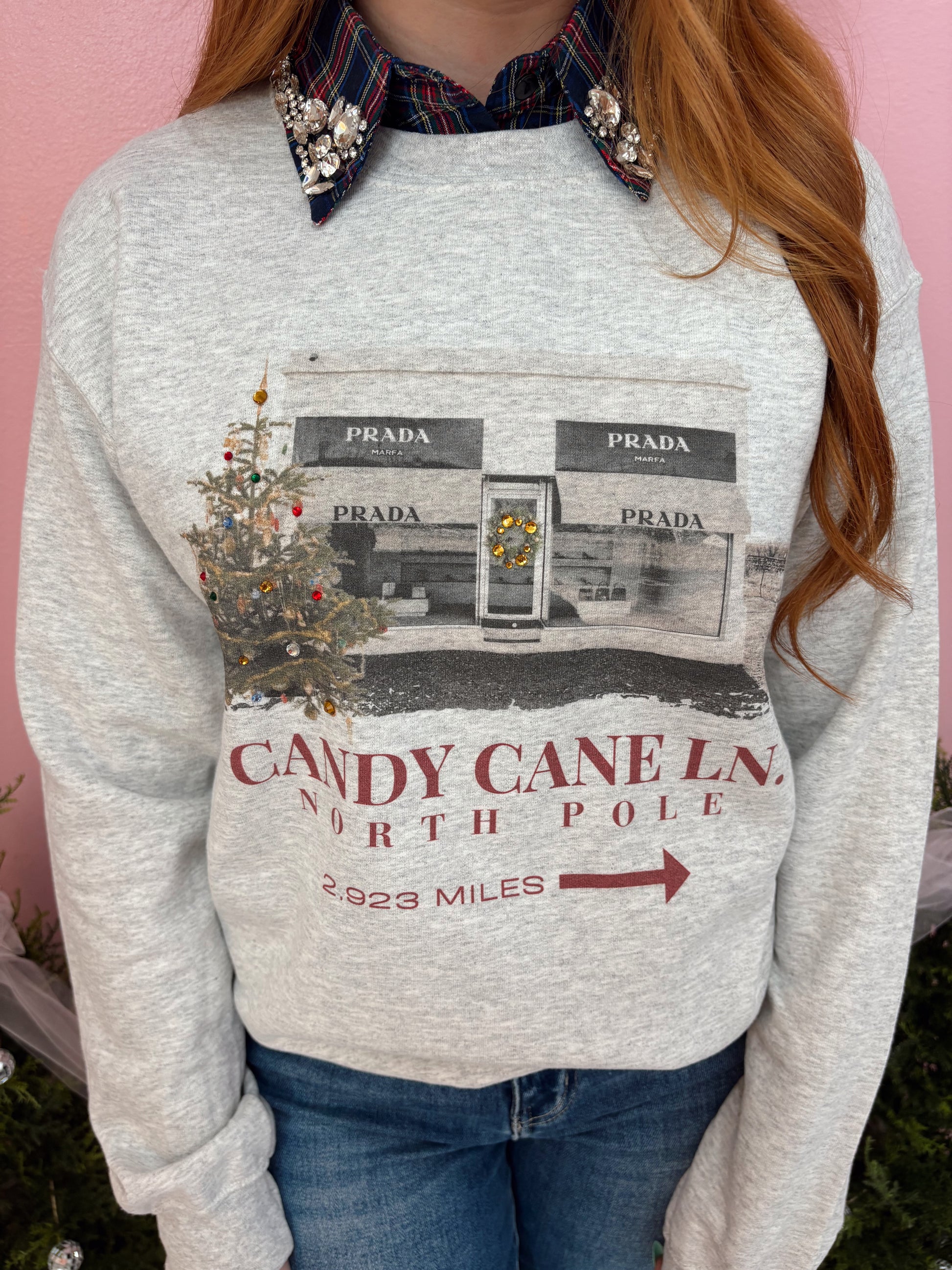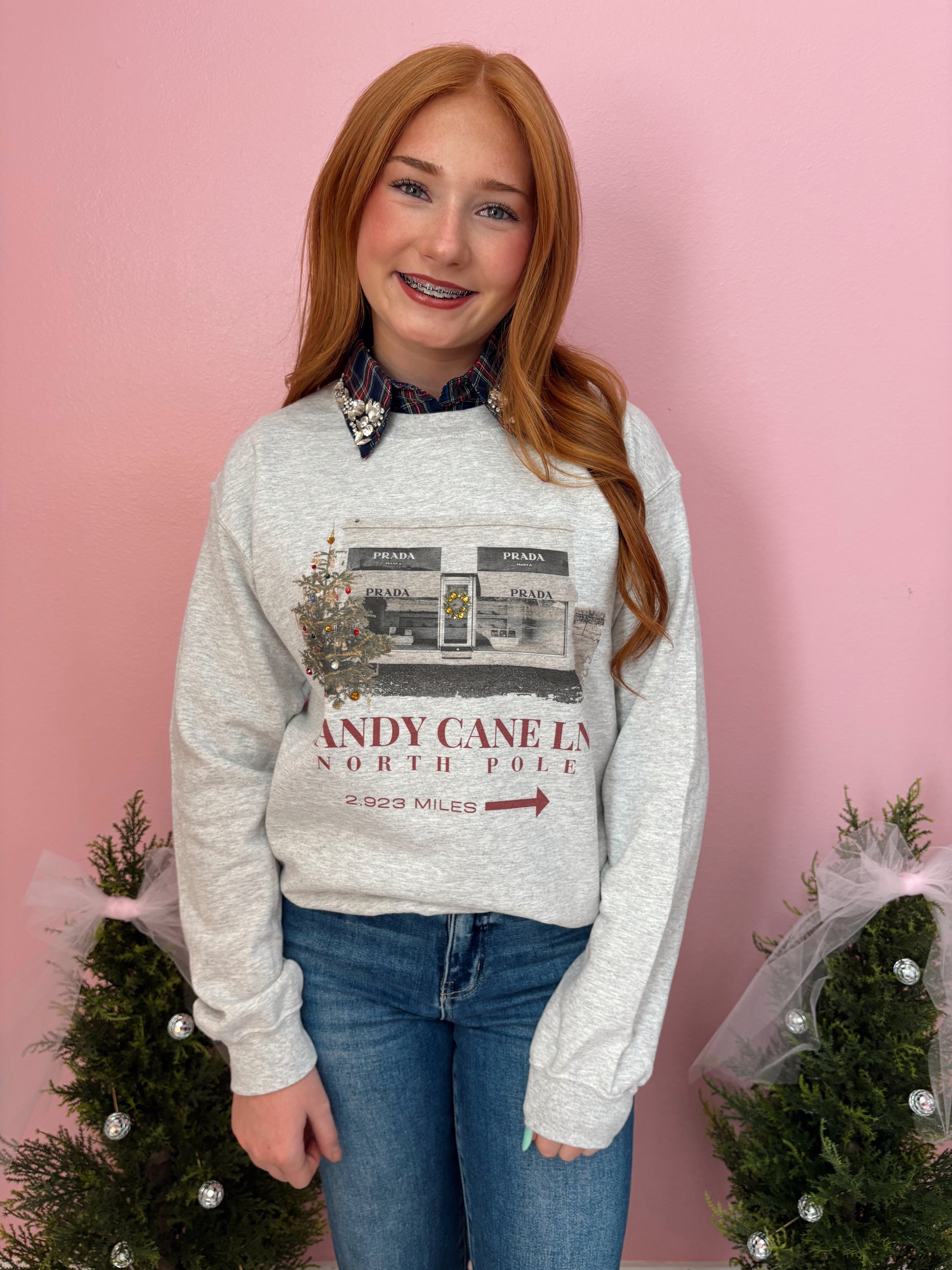 Add some sparkle to your winter wardrobe with our Candy Cane Marfa Sweatshirt! Its bling feature adds a playful touch to any outfit. Stay cozy and stylish (and a little bit extra) this season.