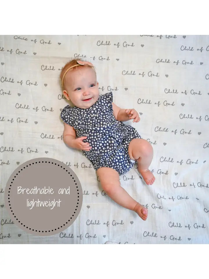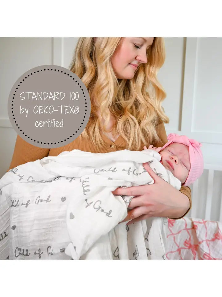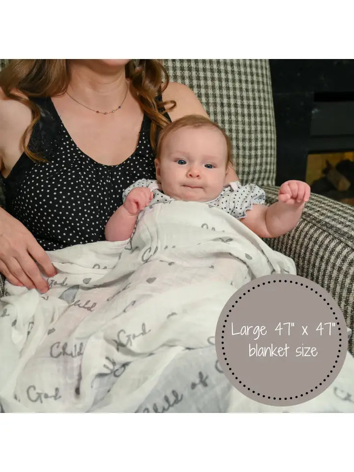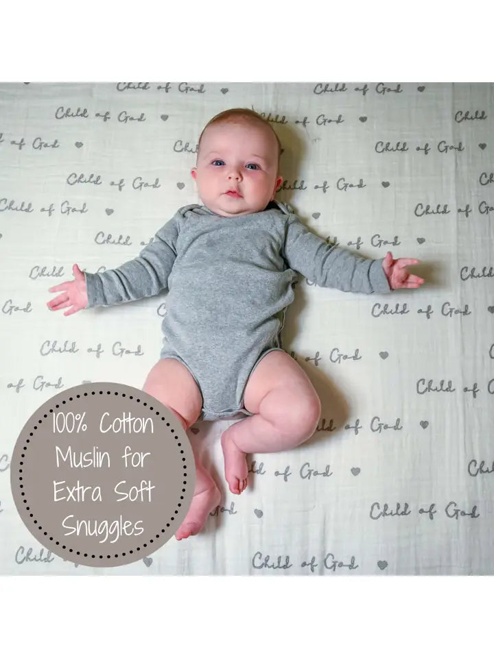 Wrap your precious little one in the soft and cozy Child of God Baby Blanket. Made from 100% cotton muslin, this breathable and lightweight swaddle will keep your baby feeling safe and secure from newborn to toddler years. The Christian print adds a special touch to any nursery or stroller. Perfect for baby showers and as a welcome present.