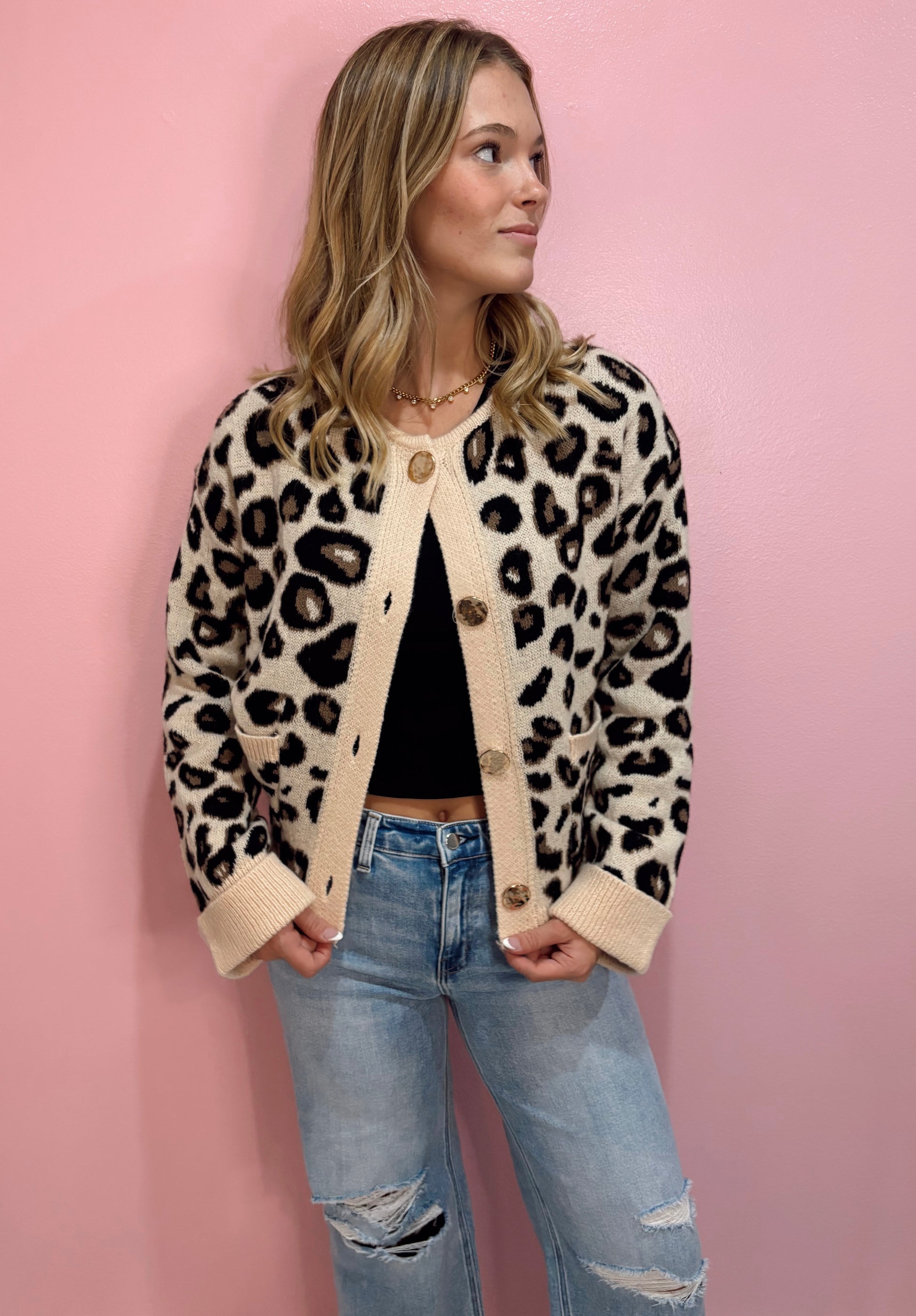 Stay cozy and stylish with this Chunky Leopard Cardigan crafted from 100% polyester for lasting softness and durability. Its trendy leopard pattern adds a bold touch to any outfit, while the high-quality knit ensures warmth and comfort. Perfect for layering, this cardigan blends fashion with functionality to elevate your wardrobe effortlessly.