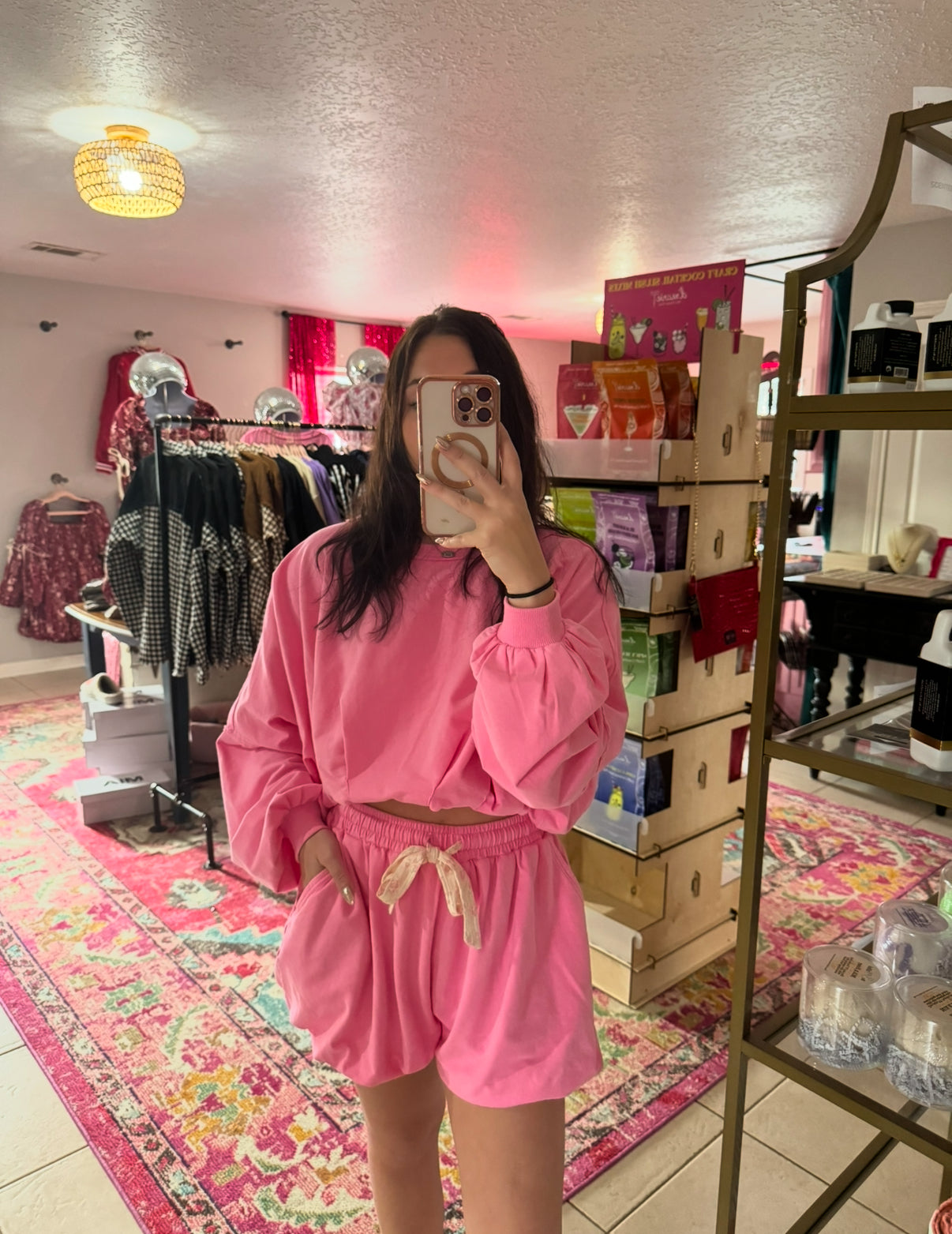 This Pink Bubble Matching Set features a charming bubble skirt and a coordinating top. The skirt is adorned with a delicate floral lace bow, adding a feminine touch. Perfect for any occasion, this set is a versatile addition to your wardrobe. Minimalist yet stylish, complete your look with this must-have set.